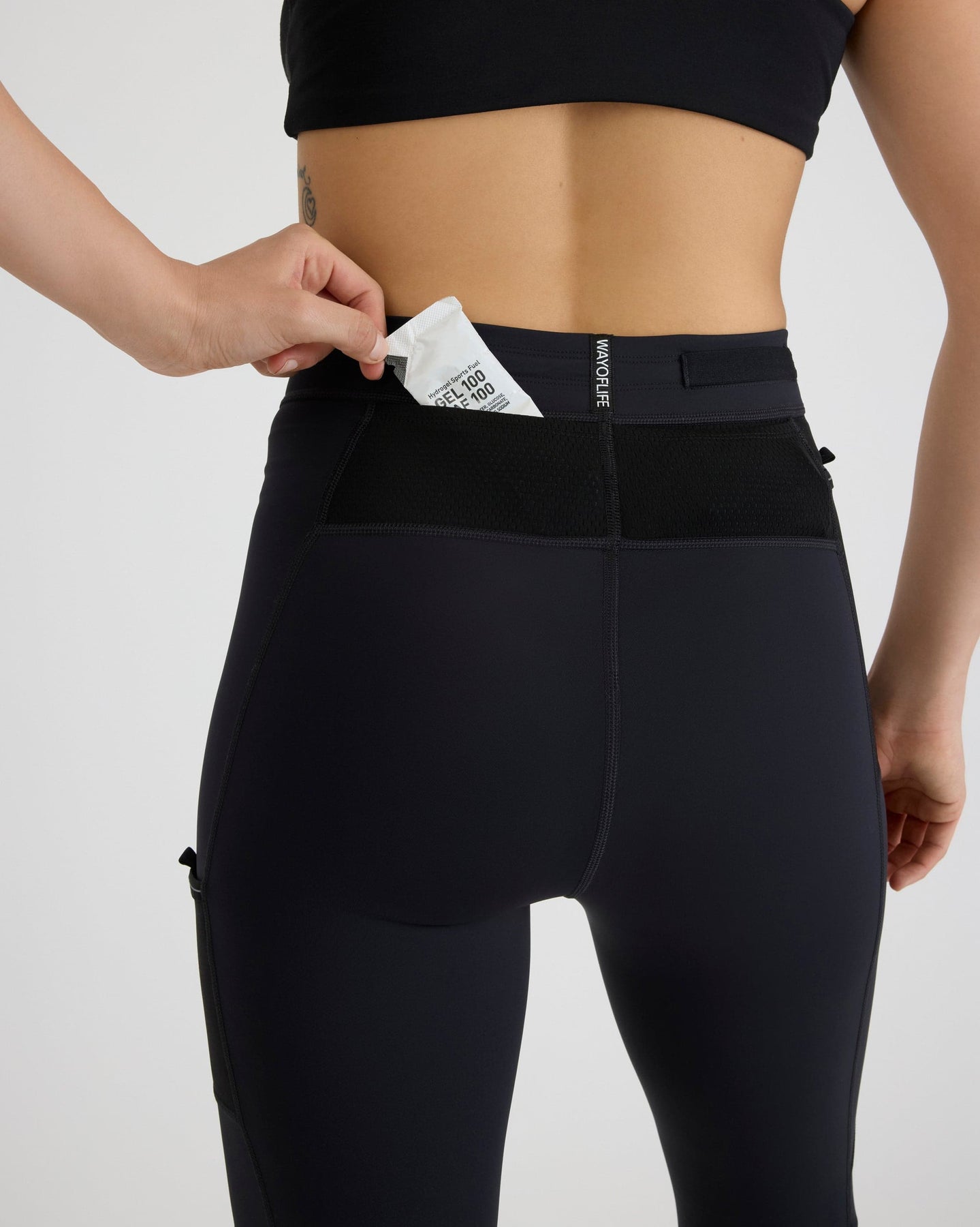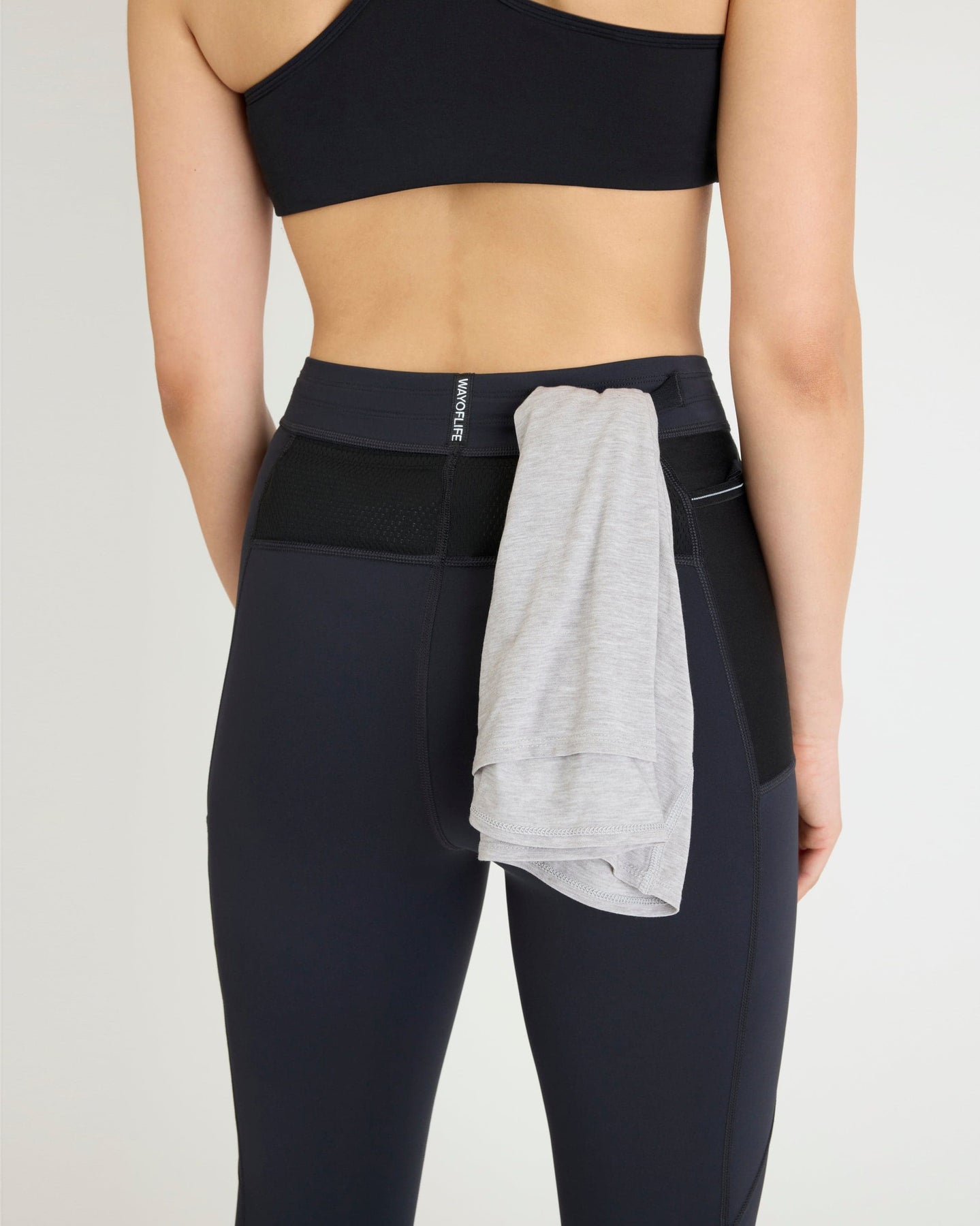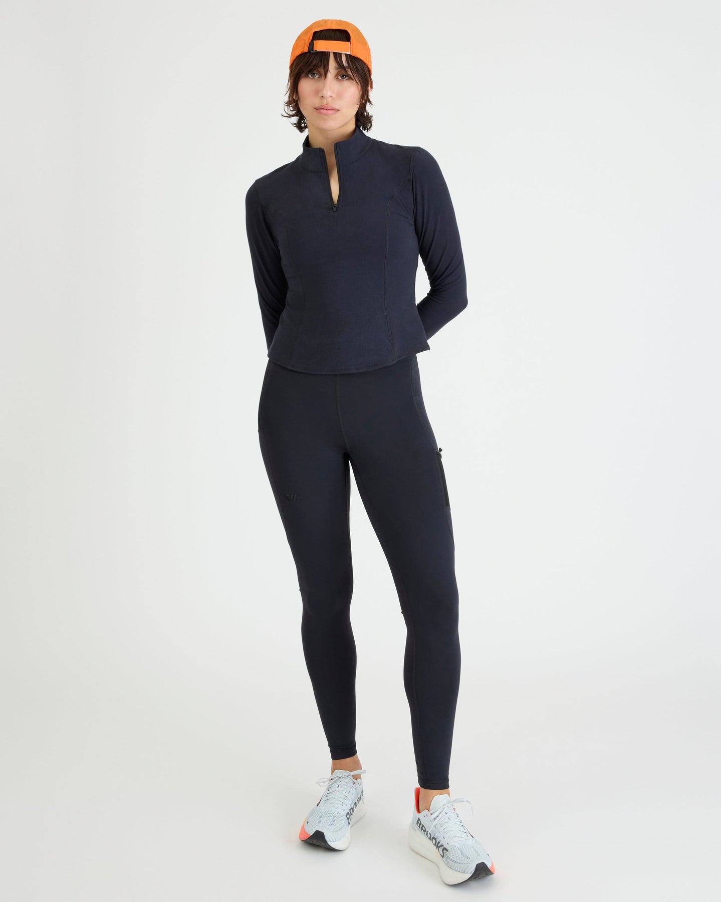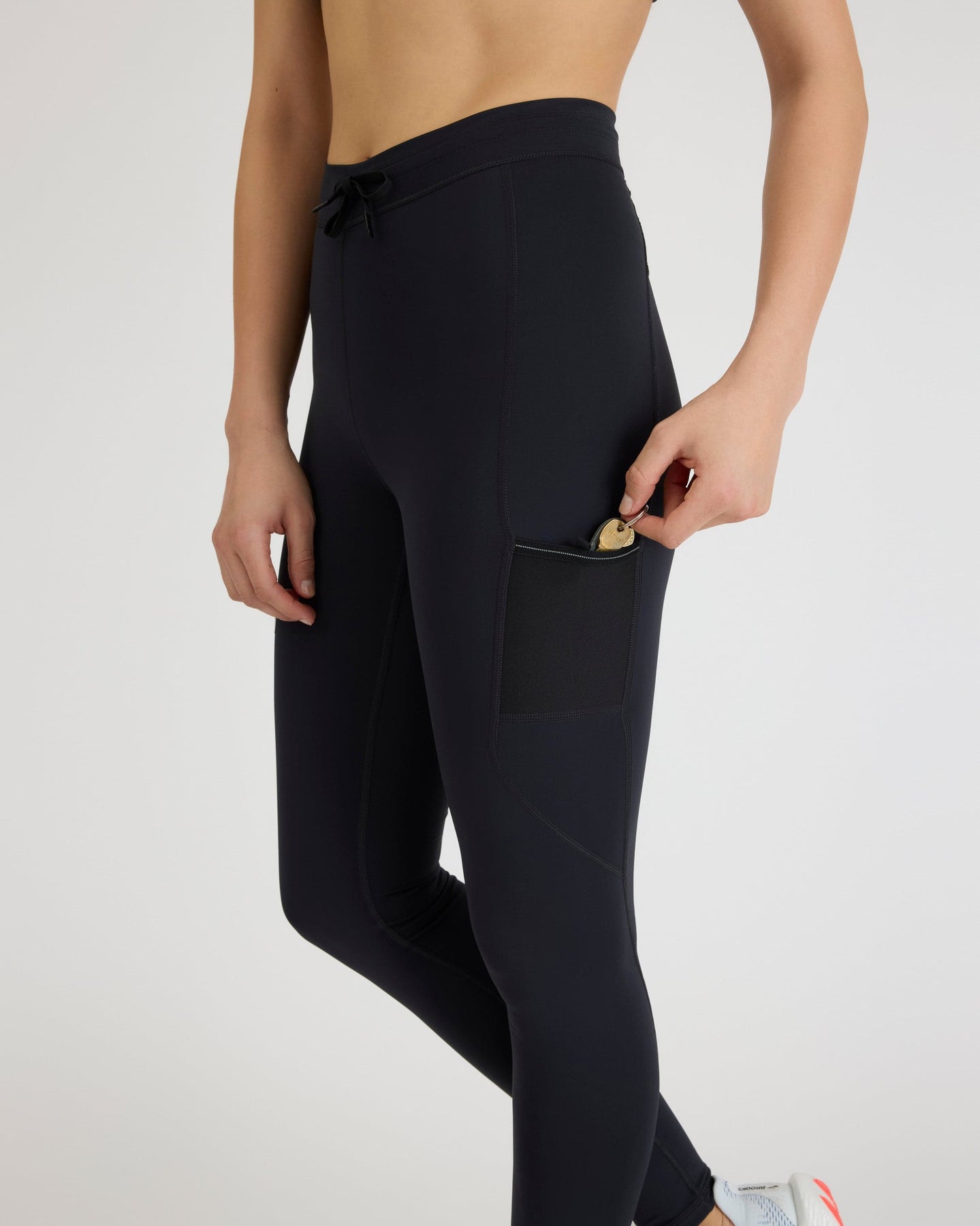 Engineering meets elegance. Two sweat-proof side pockets and two breathable back cargo pockets store all necessities for a hands-free run. Luxe double-faced fabric provides enhanced structure while microsponge moisture-wicking tech manages sweat for the long haul.