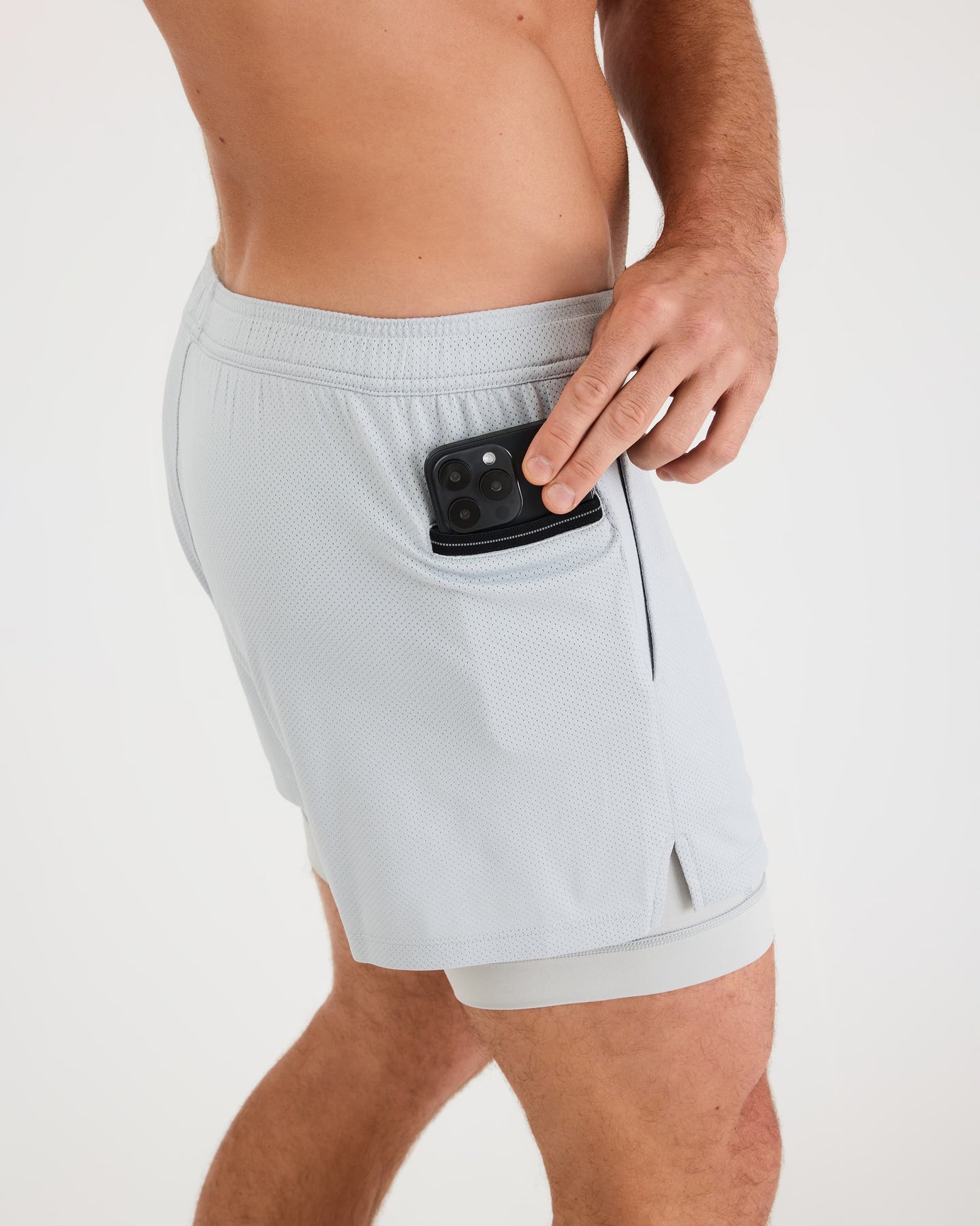 The Grand Short is the physical manifestation of our team's obsession with efficiency. The outershort is anchored by our built-in signature compression baselayer. Complete with two secure sweat-proof pockets, highlighted by an external entry phone pocket on the right hip.